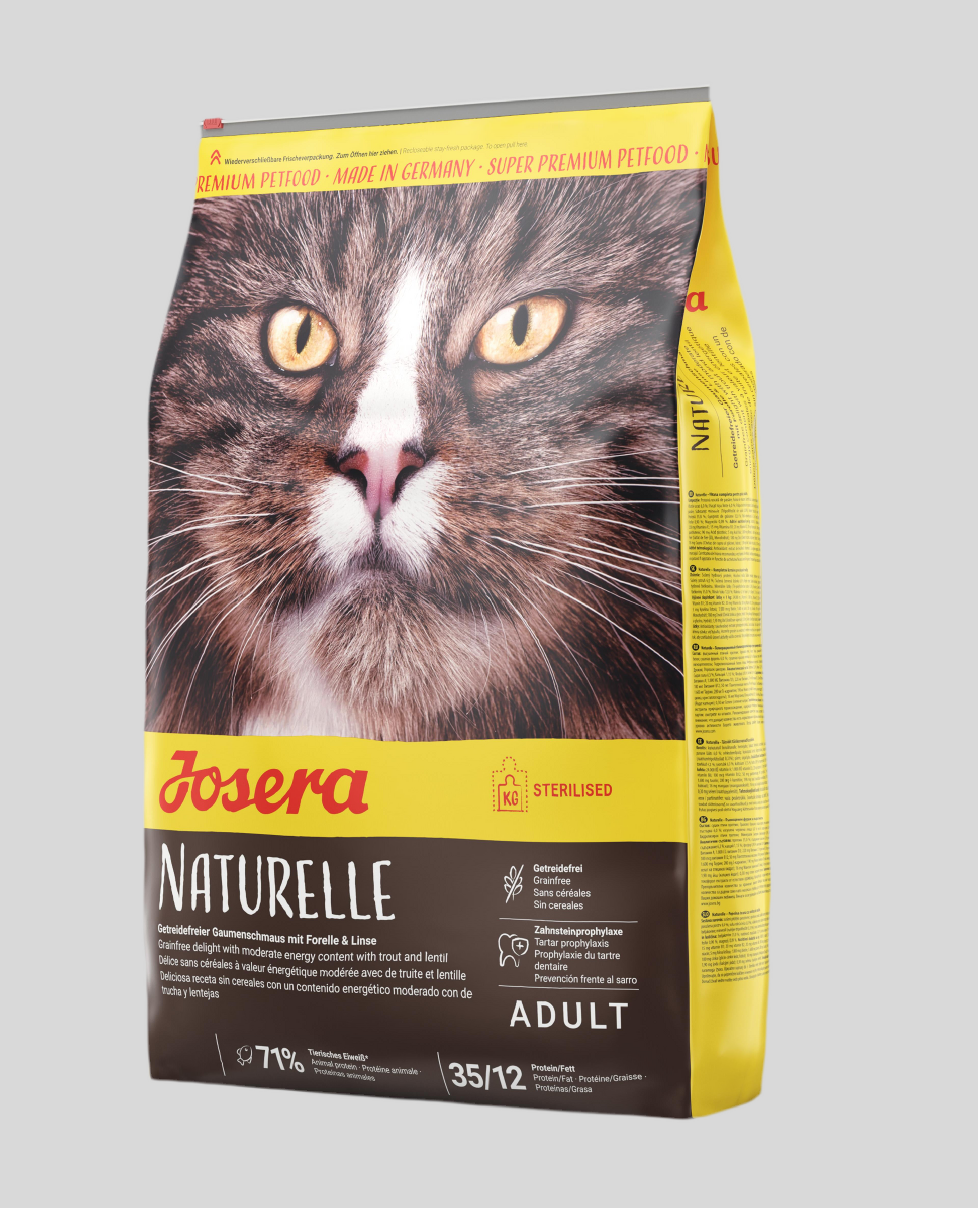 JOSERA Naturelle with lentil and trout offers a grainfree, tasty recipe with moderate fat content to provide your pet with the best possible care.
