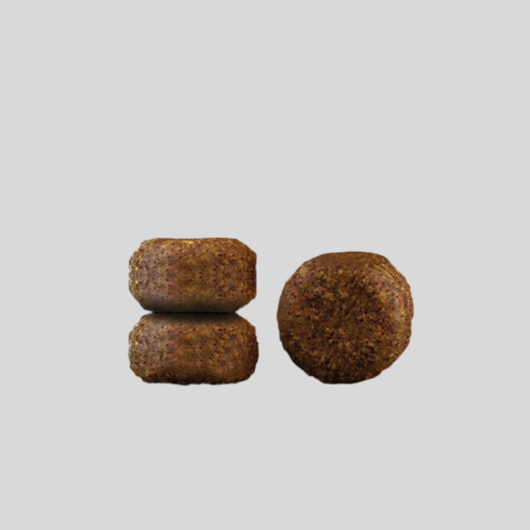 greaves, poultry fat, rice, whole grain corn, beet fibre, dried potato, potato protein, hydrolysed animal protein, minerals, hydrolysed poultry liver, salmon oil, herbs, fruits.